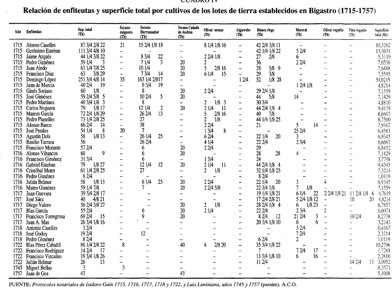 En 1715, aparece igualmente en la relación de enfiteutas establecidos en Bigastro (3), y además bastante bien parado: