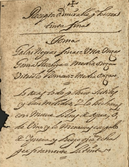 El hecho es que son muchas las recetas que sobre estas tintas han llegado a nuestros días, ya que los escribanos acostumbraban a dejarlas anotadas allá donde podían, que si un papel suelto, que si las páginas finales de un protocolo… cualquier rincón era bueno a fin de poder tener siempre a mano la receta de una buena elaboración de tintas. Y es que… «Val més llapisera curta que memòria llarga».