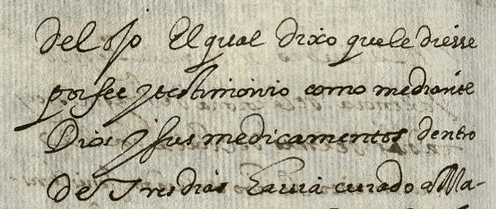 La propia María López juró en forma que por verdad que el dicho siciliano en dicho tiempo y espacio de tres días mediante Dios y su medicamento del aceite magistral le había curado de dicha enfermedad y que ya se encontraba «buena, sana y sin lesión alguna».